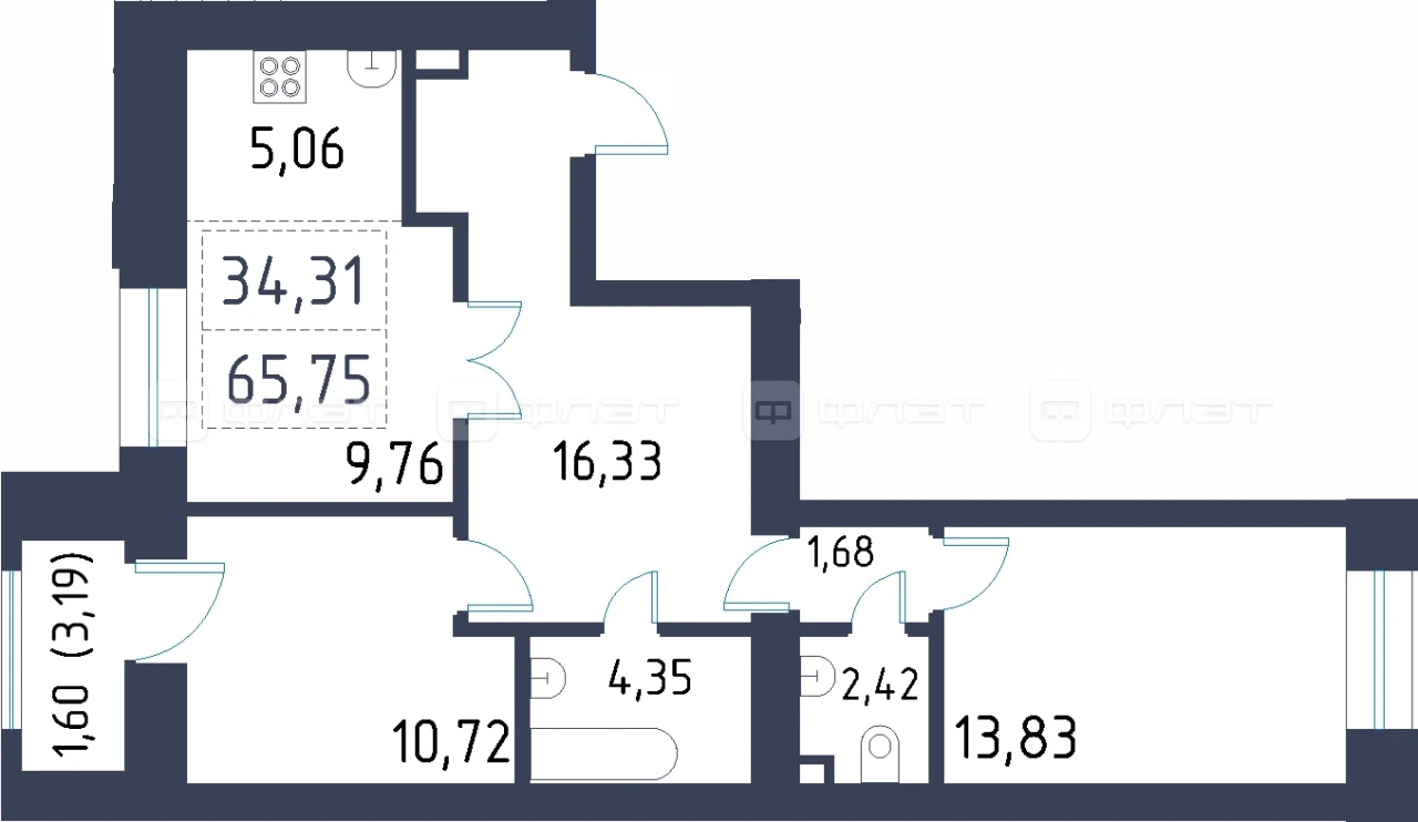 - 65.75/34.31/5.06 м²